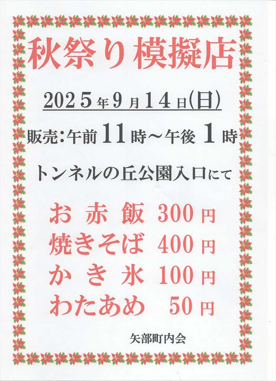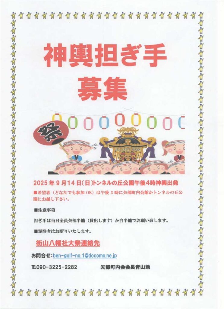 9/13(土)・9/14(日)は矢部・吉田町内会のお祭りになります。